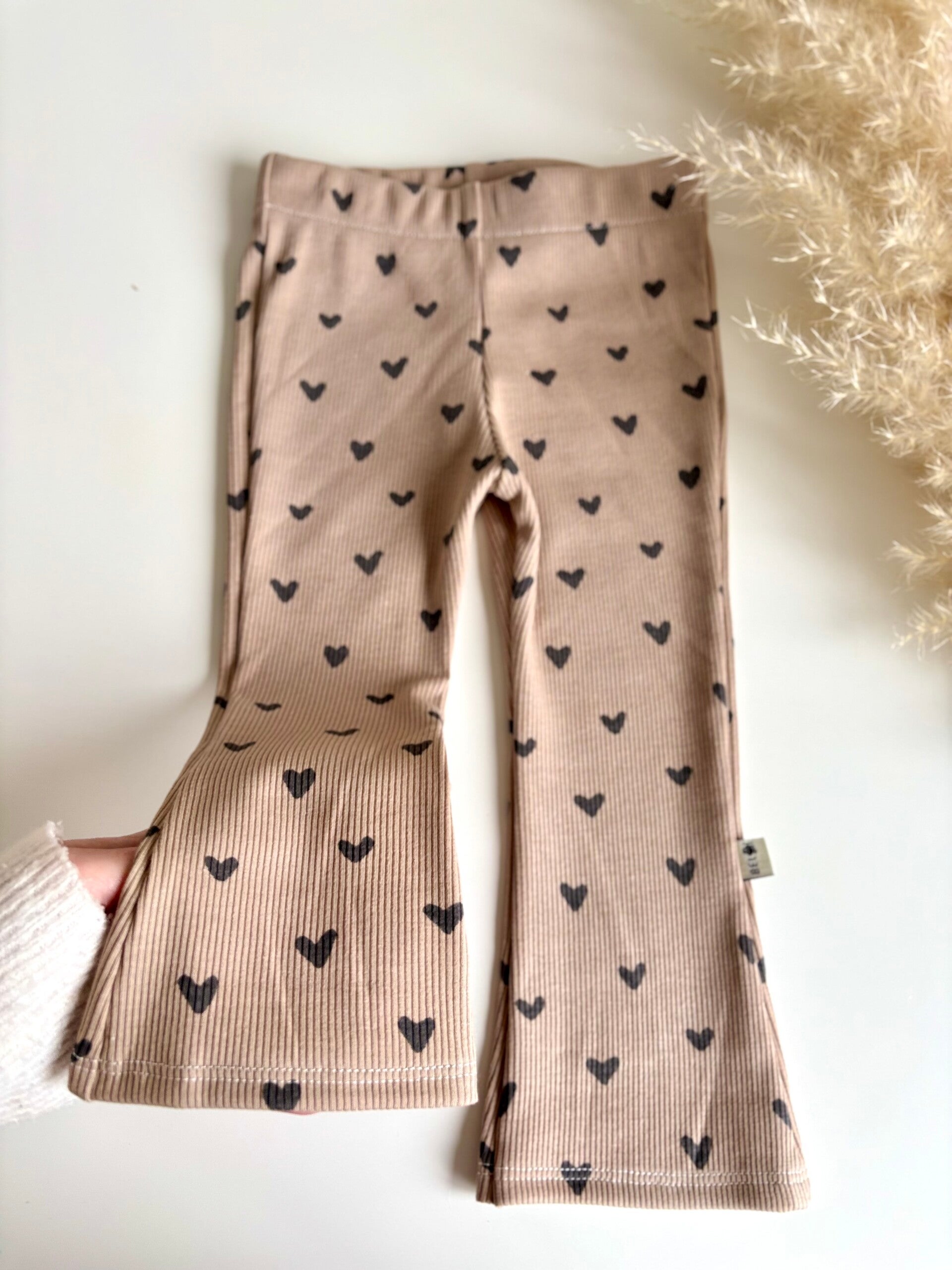 Dit flared broekje hartjes is een absolute eyecatcher en kan niet ontbreken in de garderobe van jouw meisje.