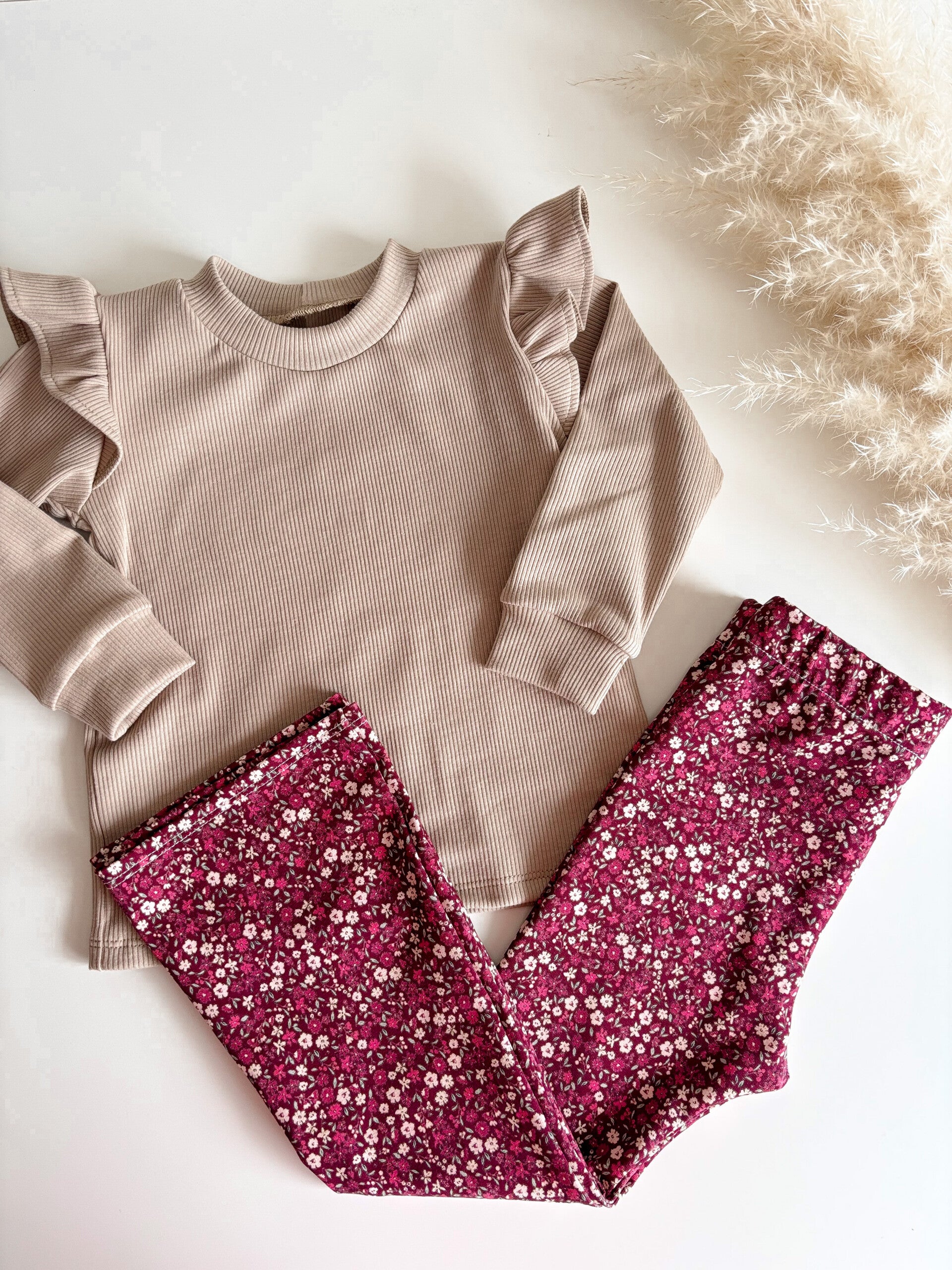 Het flared broekje is te verkrijgen vanaf maat 74 t/m 134 en wordt afgewerkt met elastiek in de taille. Ook beschikbaar als legging, legging met ruffle of broekje.